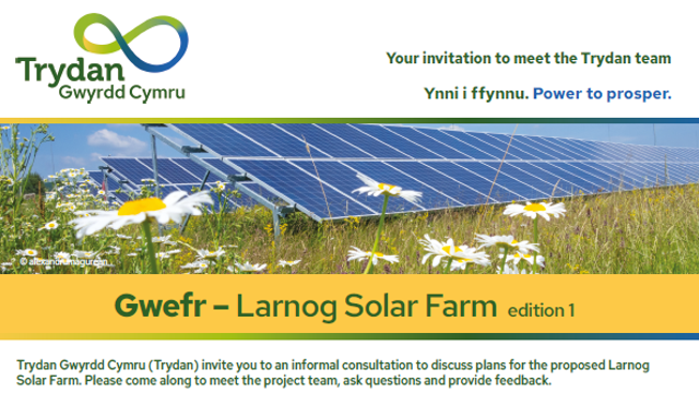 We have a grid connection offer from National Grid to connect Larnog Solar Farm to the Penarth Primary Substation. We expect that the connection would be via underground cables.